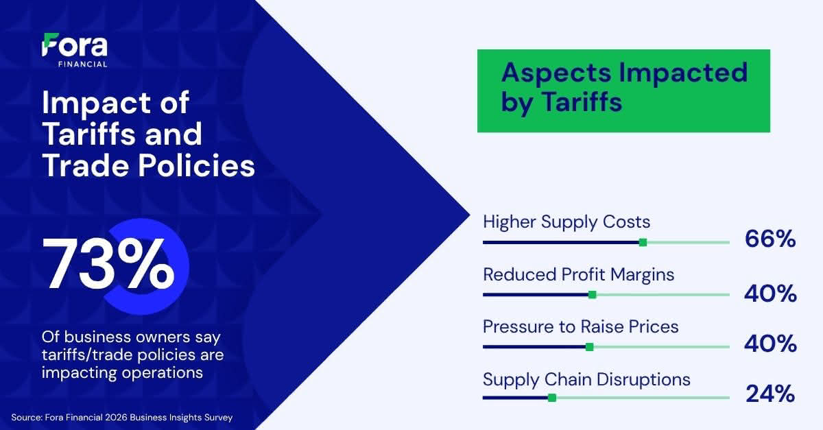 Business owners are navigating rising tariffs and ongoing cash flow pressure, yet most still expect to grow. That’s according to Fora Financial’s 2026 Business Insights Trends Report, which examines the economic forces shaping how business owners are operating this year.